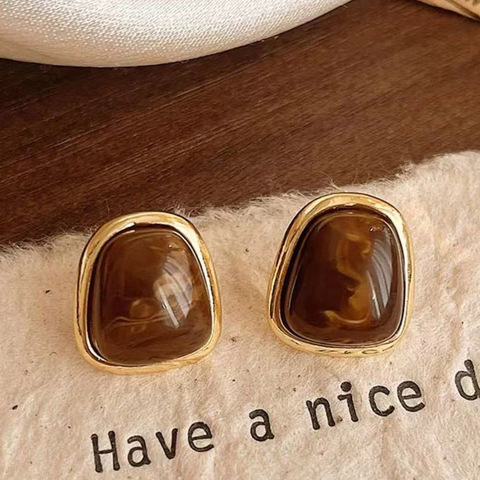 New Maillard Estilo Café Cor Tiger Eye Pedra Brincos Moda Versátil Temperamento Luz Luxo High Grade Brincos